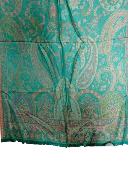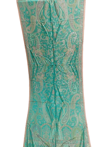 Elevate your look with this luxurious, single-color Emerald Green Stole/Shawl. Featuring an exquisite, intricate Kani-style woven pattern, this piece offers the elegance of traditional Indian textile art in a modern, easy-care fabric blend.