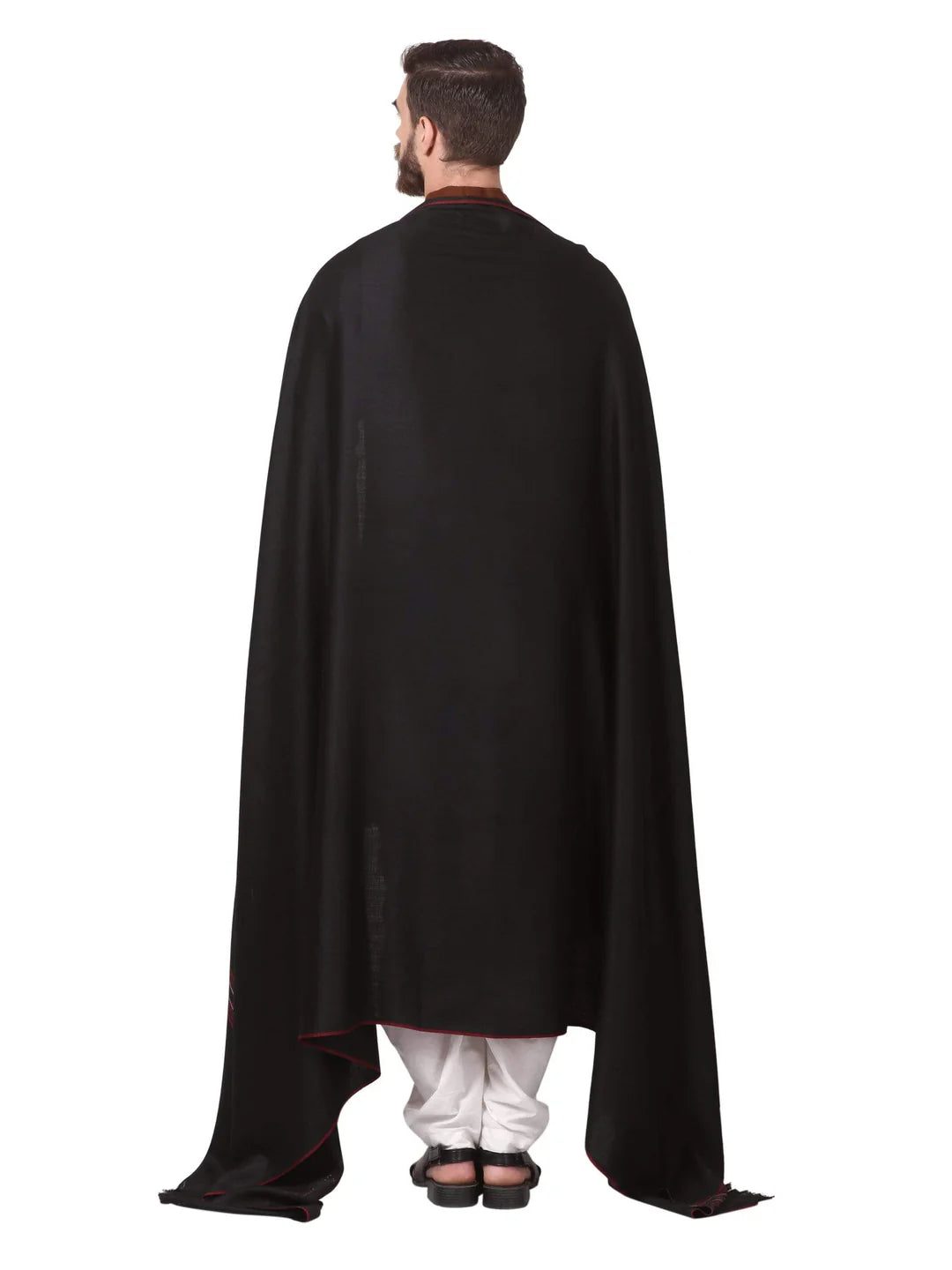 Woven Aztec Design Mens Full Size Shawl In Fine Wool -Black